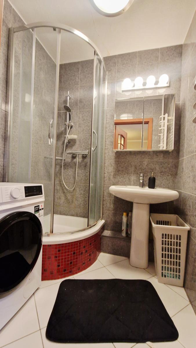Kuchnia duża, wyposażona. Osobno WC i łazienka.