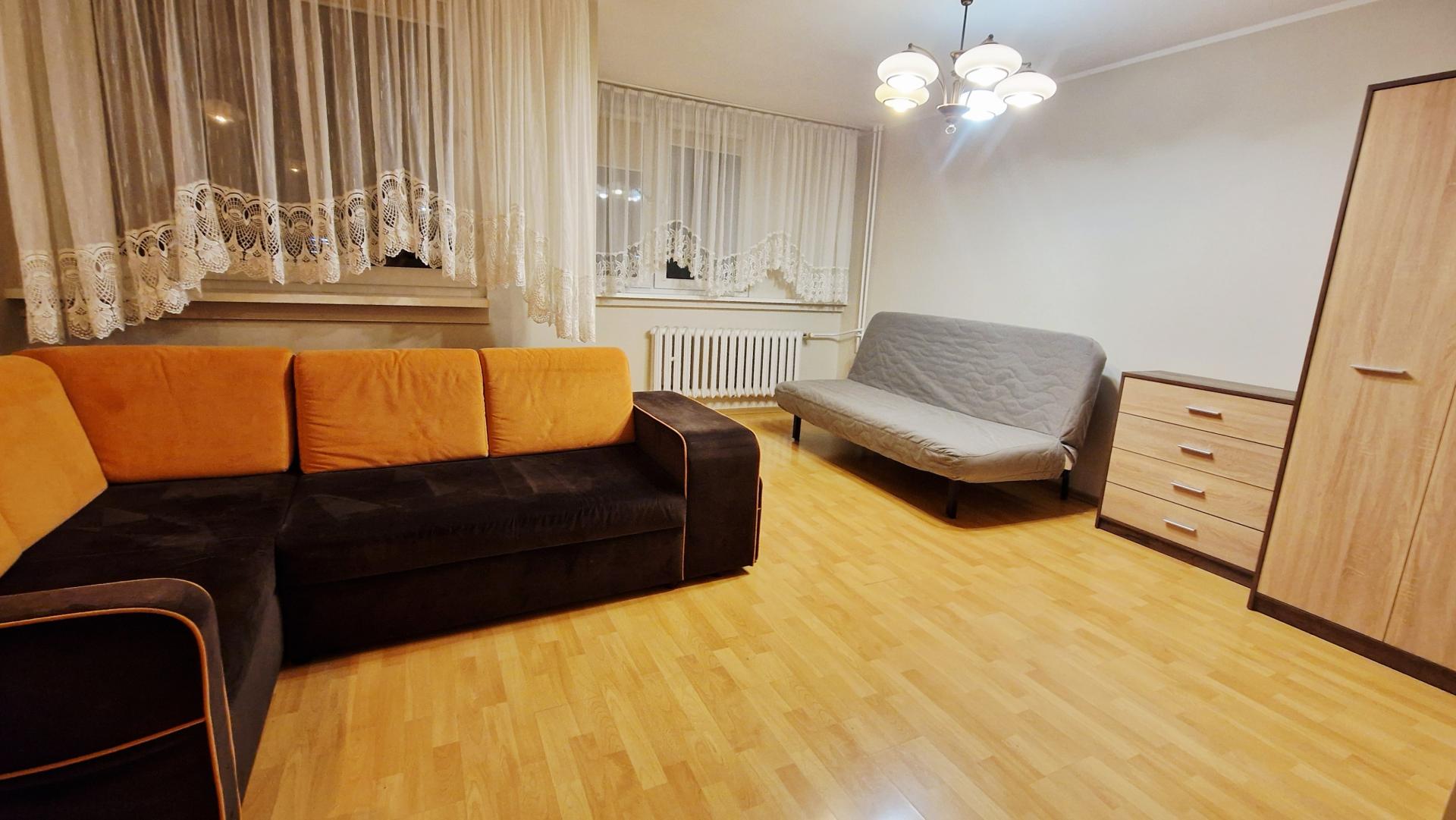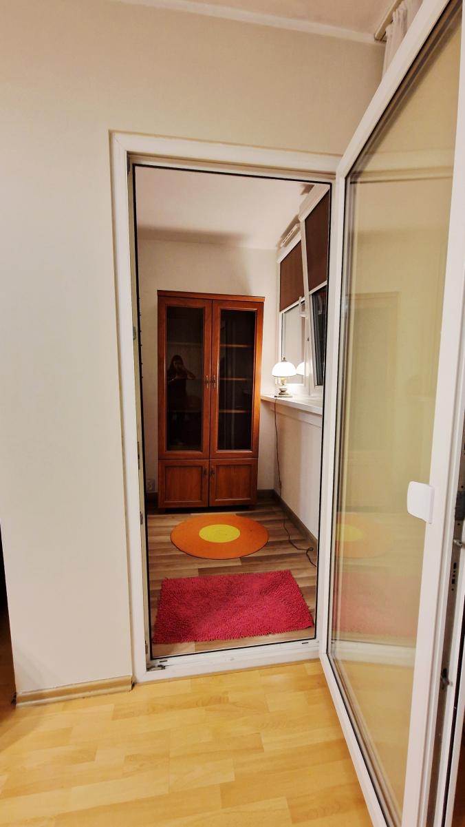 Duży pokój w mieszkaniu studenckim trzypokojowym. Skrzyżowanie ul. Legnickiej z Małopanewską. Obok bloku przystanek tramwajowy.
