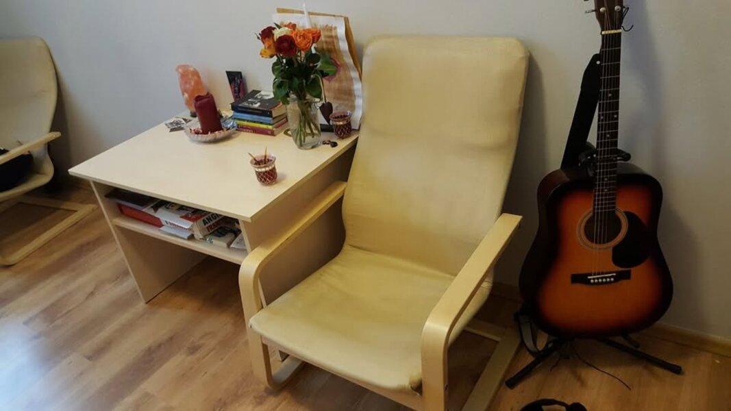Pokój umeblowany, świeżo malowany, rozkładana sofa dwuosobowa ze skrzynią na pościel, duża pojemna szafa ubraniowa trzydrzwiowa z szufladami i lustrem, nowy nierozpakowany regał, foteli itp.