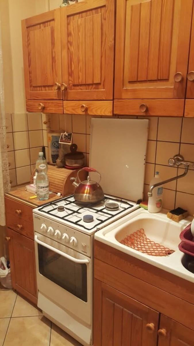 Kuchnia wyposażona- garnki, talerze itp. Łazienka z nową pralką, toaleta.